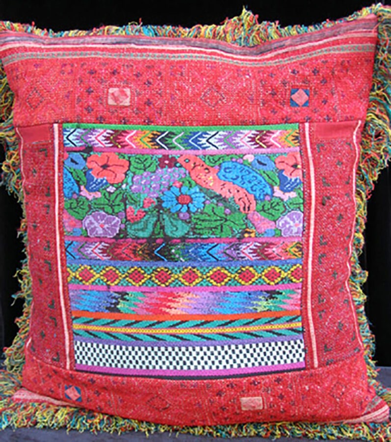 • Maya Hmong - This is beautiful. Pillow made from Mayan & Hmong textiles/fabric. Discover the rich beauty of a pillow crafted from traditional Mayan and Hmong textiles — a stunning blend of cultural heritage, color, and artistry.