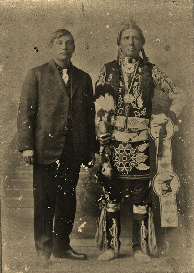 A historical look at Roy Monroe and Forrest W. Choteau of the Kaw Nation, captured in a rare 1909 photograph.